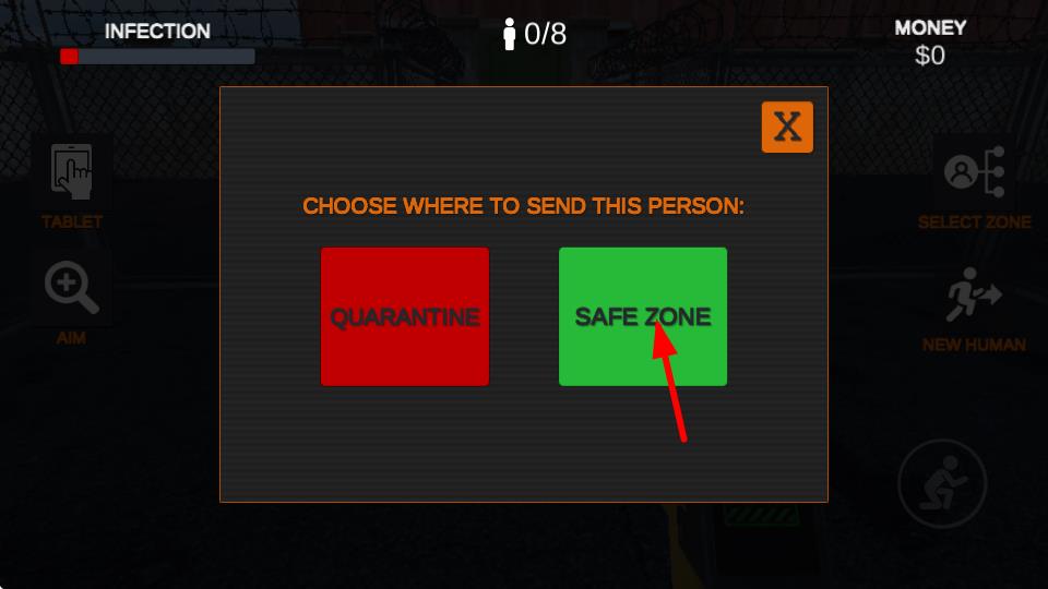 1、幸存者排查操作:工作時使用手持掃描儀檢測進(jìn)入者的體溫、心率,查看是否有隱藏咬痕、瘀傷等癥狀,對照官方癥狀圖進(jìn)行判斷,點擊綠色按鈕放行健康者。