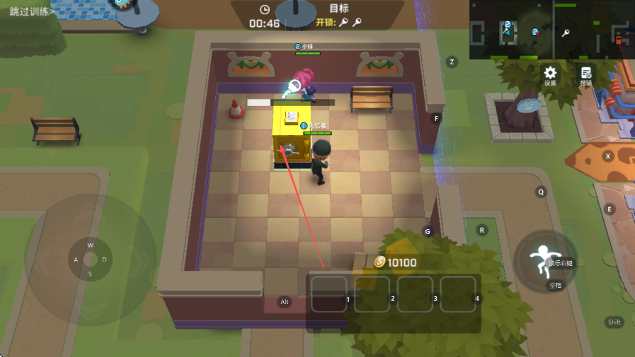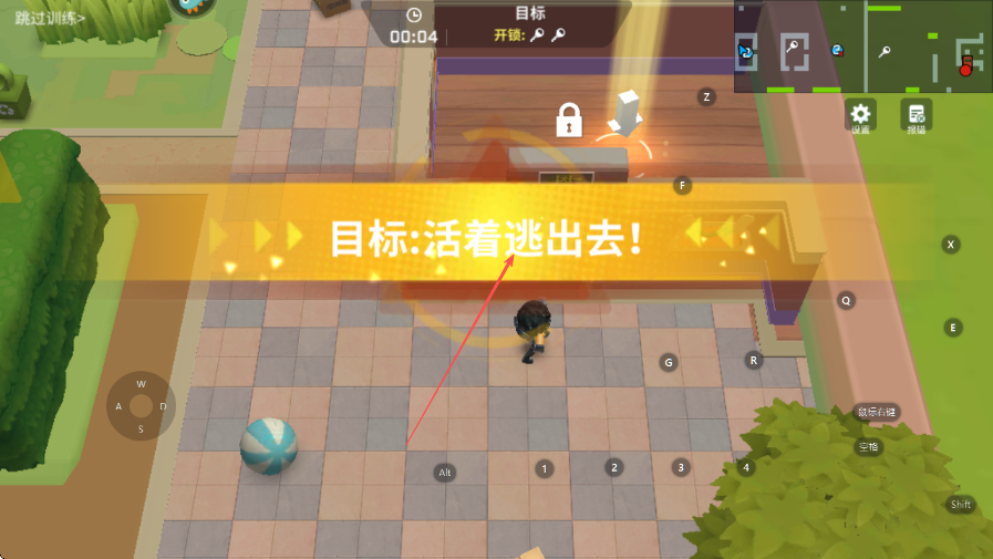 4、找到黃色寶箱后,靠近并進(jìn)行開鎖操作,獲取鑰匙以打開逃生門。