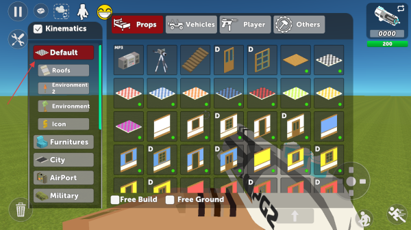 3、打開道具列表找到建筑部件分類,從中選擇需要使用的建筑部件,長按部件圖標將其拖動到地圖中的目標位置,調(diào)整好擺放角度后松開手指完成放置。