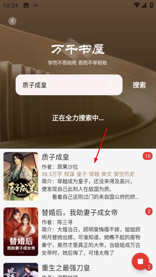 2、在搜索結(jié)果頁(yè),點(diǎn)擊質(zhì)子成皇書(shū)籍條目,進(jìn)入書(shū)籍詳情頁(yè)。