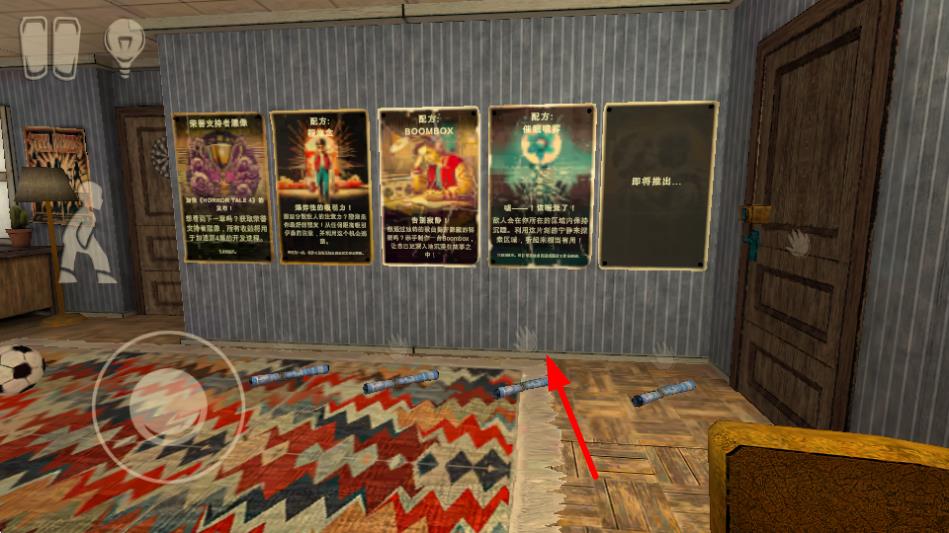 3、房間內(nèi)的配方海報(bào)展示了不同物品的制作方法,如BOOMBOX等,這些配方是制作道具、推進(jìn)解謎的關(guān)鍵信息。