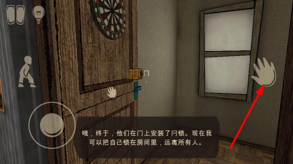4、門上的門鎖是劇情和玩法的關(guān)鍵元素,對(duì)話哦終于,他們?cè)陂T上安裝了門鎖,現(xiàn)在我可以把自己鎖在房間里。