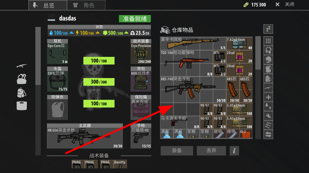2、進(jìn)入倉(cāng)庫(kù)里面有各類武器可供選擇,根據(jù)戰(zhàn)斗需求,挑選合適的武器裝備到自身,提升戰(zhàn)斗能力,以便更好地應(yīng)對(duì)冒險(xiǎn)中的挑戰(zhàn)。