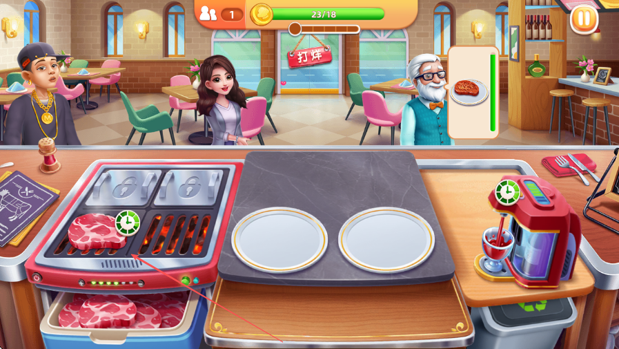 2、時(shí)間管理挑戰(zhàn):隨著顧客數(shù)量增加,玩家需合理分配時(shí)間,平衡多份訂單的制作進(jìn)度,避免顧客等待過(guò)久,鍛煉時(shí)間規(guī)劃與統(tǒng)籌能力。