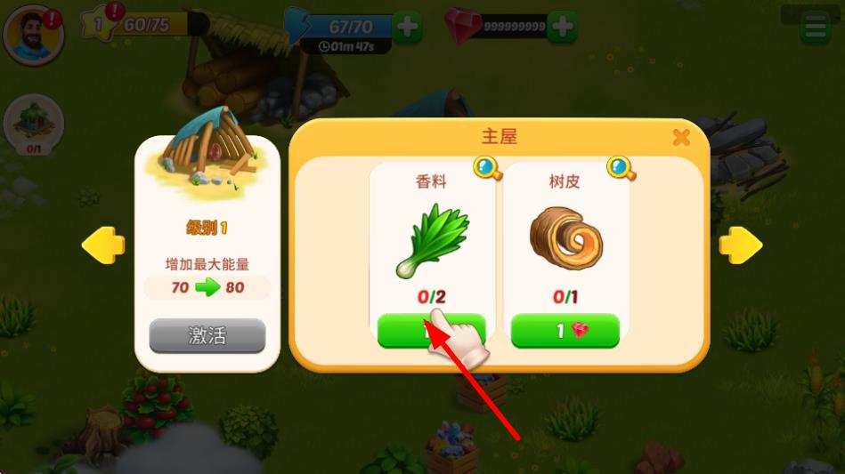 3、在主屋界面中,收集香料等資源可升級建筑,提升最大能量值,建筑升級是增強島嶼發(fā)展能力、解鎖新內(nèi)容關(guān)鍵環(huán)節(jié)。