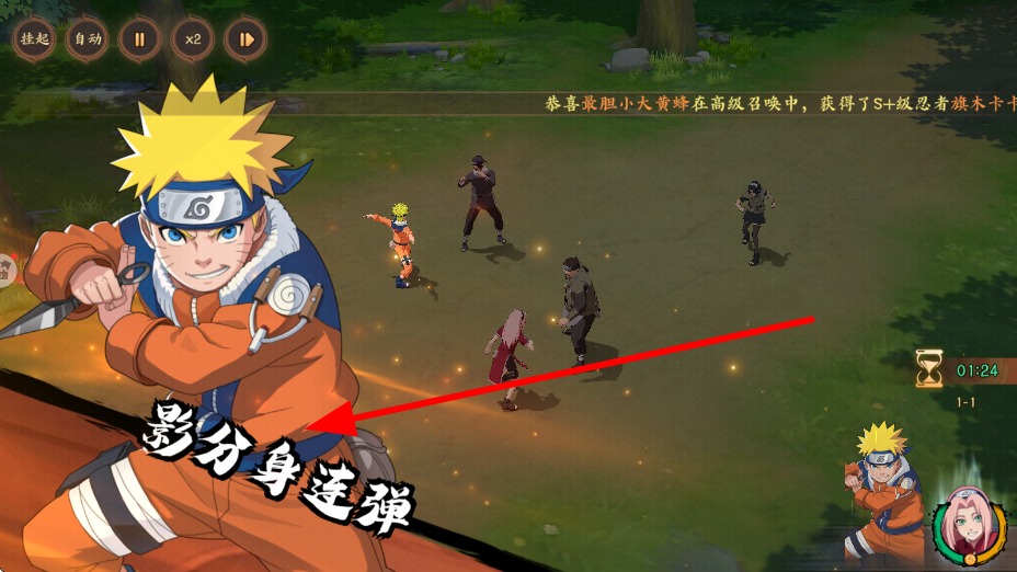 3、戰(zhàn)斗過程中,忍者會自動或通過操作釋放技能,像影分身連彈這類強力技能,能對敵人造成大量傷害,助力戰(zhàn)斗推進。