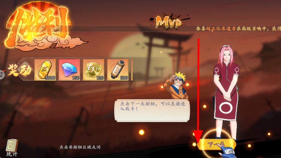 4、成功擊敗敵人,達成關卡勝利后,點擊下一關,即可進入后續(xù)關卡,繼續(xù)冒險,挑戰(zhàn)更強的敵人,獲取更多獎勵。
