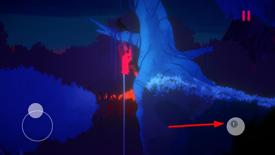 2、點擊右側(cè)的互動按鈕,角色可進(jìn)行攀爬等動作,與環(huán)境中的樹木互動,攀爬操作是探索高處區(qū)域、獲取線索關(guān)鍵方式。