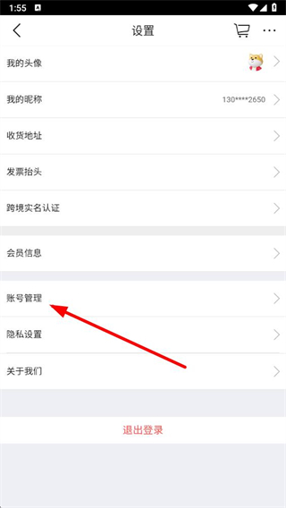 3、在設(shè)置界面中,找到并點(diǎn)擊賬號管理選項(xiàng)。