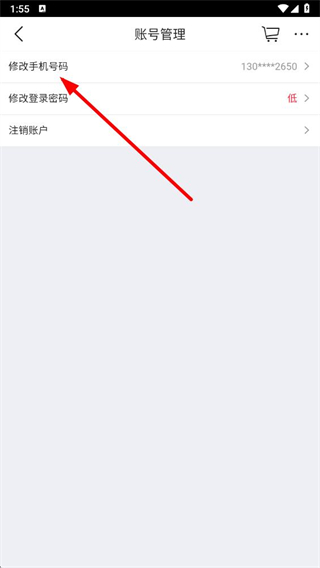 4、在賬號管理頁面,點(diǎn)擊修改手機(jī)號碼的選項(xiàng)設(shè)置。