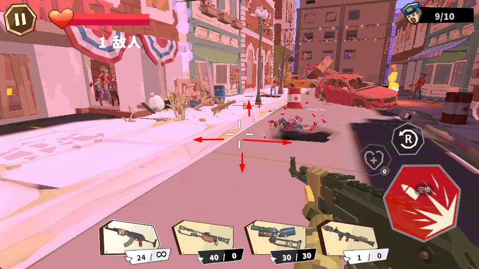 2、方向快速精準(zhǔn)判斷:戰(zhàn)斗中需即時(shí)觀察戰(zhàn)場(chǎng)動(dòng)態(tài),確定最佳攻擊方向與安全逃離路線,避免受到僵尸傷害,這種對(duì)局勢(shì)的精準(zhǔn)判斷是通關(guān)關(guān)鍵,考驗(yàn)玩家的反應(yīng)能力與決策速度。