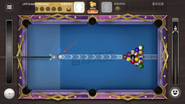 1、進(jìn)入臺(tái)球?qū)譁?zhǔn)備階段,調(diào)整球桿瞄準(zhǔn)主球,觀察臺(tái)球桌上彩球的分布情況,確認(rèn)擊球方向和力度,為開球做好準(zhǔn)備。