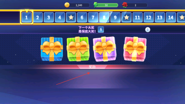 3、參與對(duì)局并完成相應(yīng)任務(wù)后,進(jìn)入獎(jiǎng)勵(lì)界面,界面會(huì)展示帶有蝴蝶結(jié)的彩色禮盒,點(diǎn)擊“獎(jiǎng)勵(lì)”相關(guān)區(qū)域,即可開啟禮盒獲取獎(jiǎng)勵(lì)。