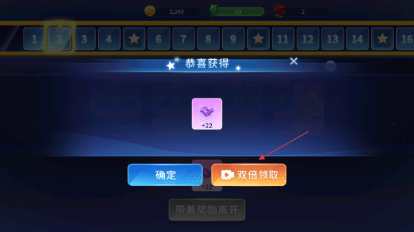 4、開啟禮盒后,會(huì)顯示獲得的獎(jiǎng)勵(lì),如鉆石等,此時(shí)可選擇點(diǎn)擊“確定”直接領(lǐng)取獎(jiǎng)勵(lì),或點(diǎn)擊“雙倍領(lǐng)取”觀看相關(guān)內(nèi)容來(lái)獲取雙倍獎(jiǎng)勵(lì)。