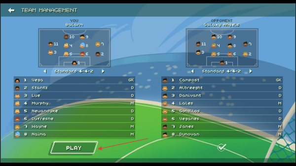 1、進(jìn)入足球游戲主界面,選擇心儀的賽事模式,確定己方要使用的球隊,調(diào)整球員的首發(fā)陣容和場上站位,檢查球員的體力與狀態(tài),為即將開啟的賽事做好全面準(zhǔn)備。