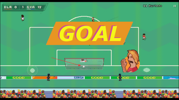 3、當(dāng)找到射門機會時,精準(zhǔn)控制射門的方向和力度,若成功進(jìn)球會觸發(fā)進(jìn)球動畫和得分提示,查看當(dāng)前更新的比分,迅速調(diào)整狀態(tài)回到賽場,防范對手借助反擊發(fā)起的進(jìn)攻。
