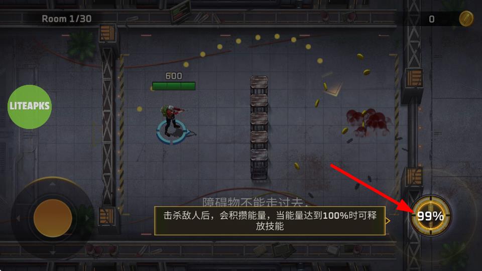 2、擊殺敵人后會(huì)積攢能量,當(dāng)能量達(dá)到100%時(shí)可釋放技能,用技能高效清理敵人、是突破關(guān)卡重要手段。