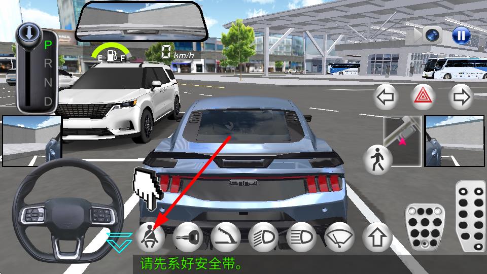 1、點擊安全帶按鍵,系好了安全帶,這是駕駛前的必要的操作,確保行駛過程中的安全。