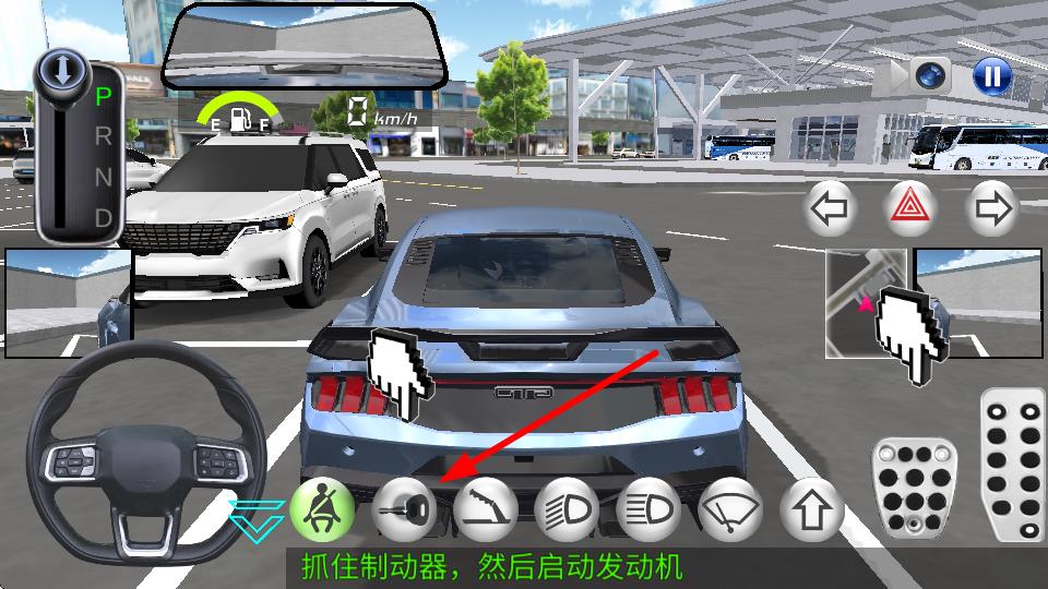 2、抓住制動器后啟動發(fā)動機,按照提示操作可順利啟動車輛,為行駛的過程做好了準備。