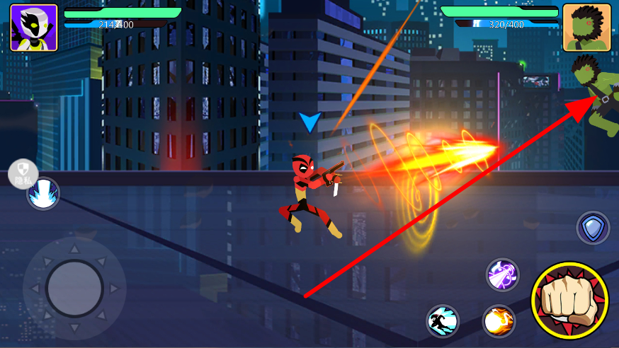 3、明快視覺風(fēng)格:運用經(jīng)典火柴人造型搭配鮮艷色彩方案,打造辨識度的游戲視覺,動作流暢度高,打擊感反饋清晰直觀。
