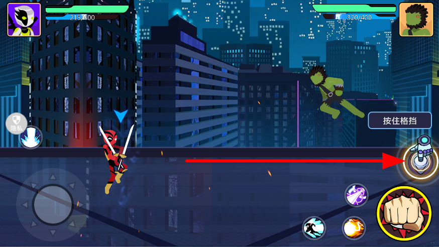 4、當(dāng)敵人發(fā)起進攻時,適時按住格擋按鈕,進行格擋操作,減少敵人攻擊對自身造成血量損失的影響,更好地在戰(zhàn)斗中存續(xù)。