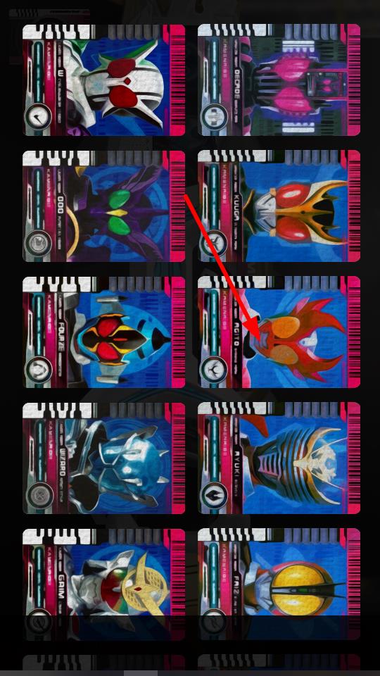 1、在腰帶界面中,點擊帶有騎士形象的卡片區(qū)域,插入對應(yīng)騎士卡片,變身使用騎士能力的操作。