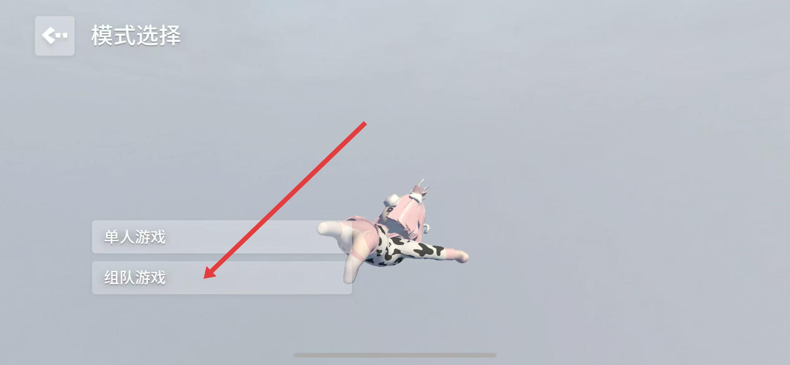 2、在模式選擇界面,可以看到單人游戲和組隊(duì)游戲兩個(gè)選項(xiàng),選擇組隊(duì)游戲并點(diǎn)擊。
