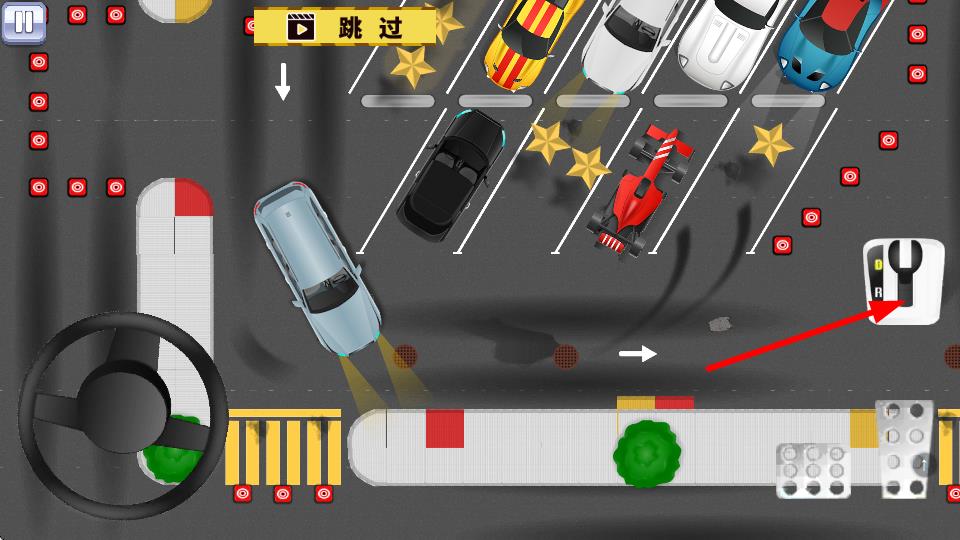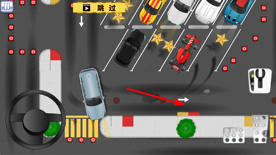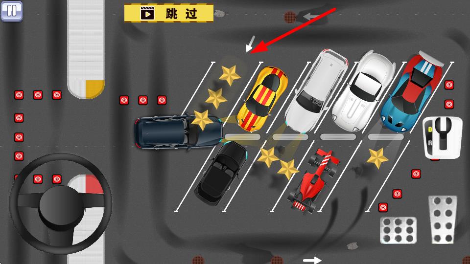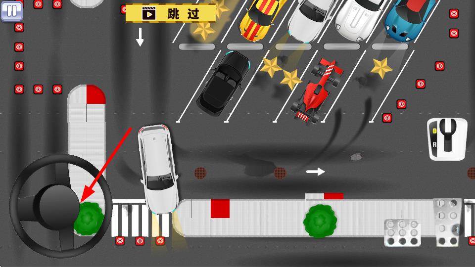 1、在停車場場景中,觀察箭頭指向的車輛,操控移動時需避開其他停放車輛,朝著箭頭指示方向行駛,通過該區(qū)域。