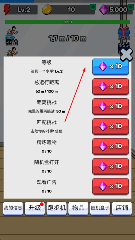 4、達(dá)成等級(jí)、總運(yùn)行距離等各類目標(biāo)后,可獲取鉆石等獎(jiǎng)勵(lì),積累資源用于游戲內(nèi)的各種提升,不斷提升角色與游戲體驗(yàn)。
