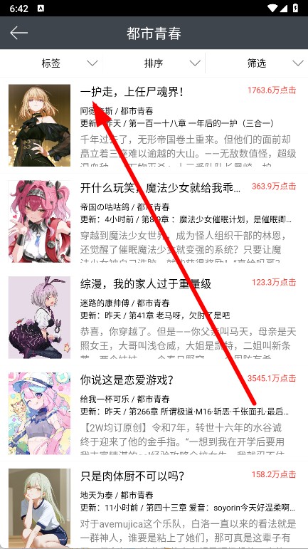 3、在所選分類的小說列表中,點擊想要閱讀的小說。