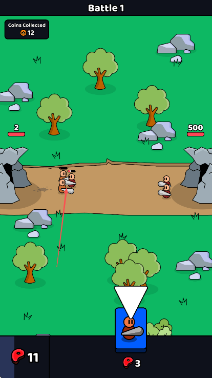 4、觀察戰(zhàn)場局勢,指揮戰(zhàn)士攻擊敵人,收集CoinsCollected顯示的金幣,獲取資源并贏得戰(zhàn)斗勝利。