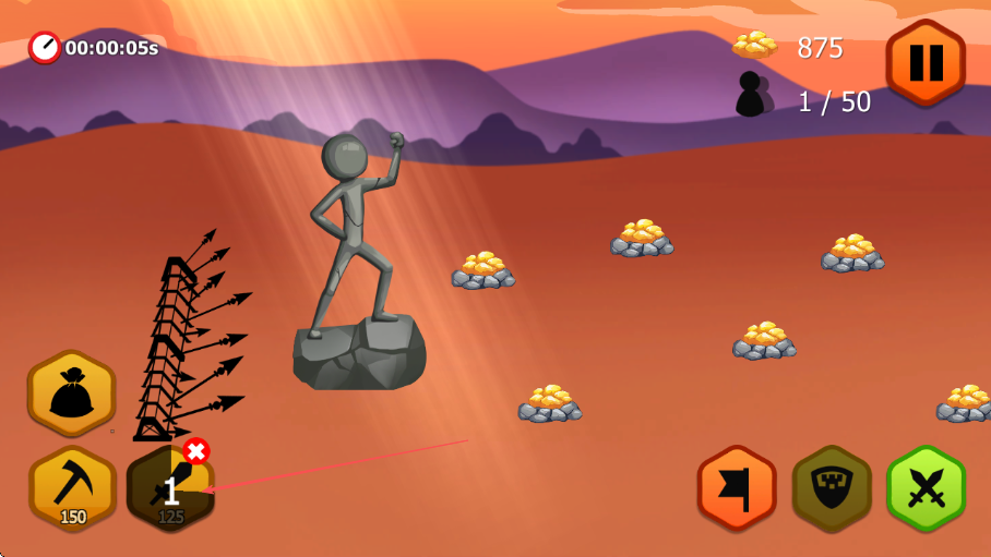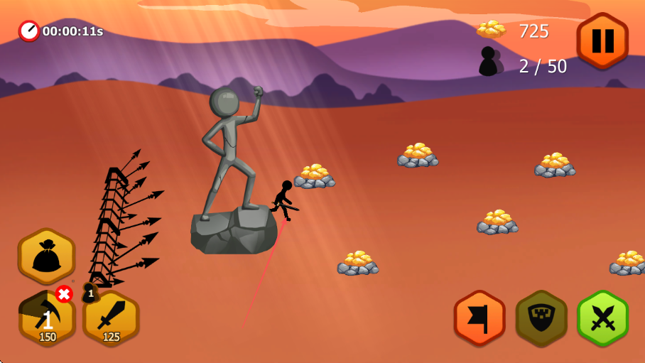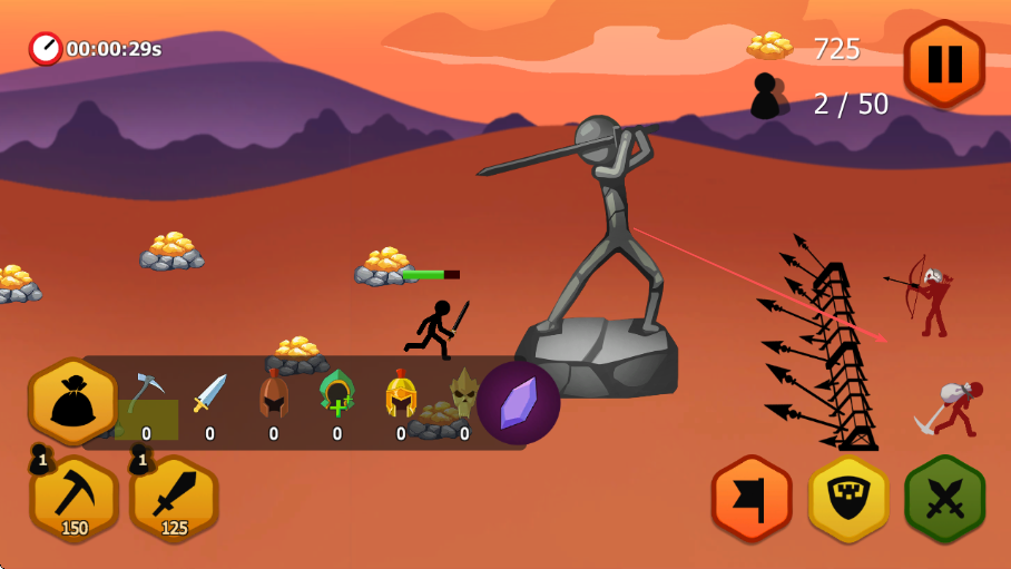 火柴大戰(zhàn)是一款以火柴人為主題的即時策略類作品,每一場戰(zhàn)斗都圍繞緊張刺激的軍隊指揮展開,核心目標(biāo)是玩家通過精準(zhǔn)調(diào)度自身軍隊擊敗對手、奪取勝利,作品為每一關(guān)設(shè)計了精心打磨的地圖與劇情,讓玩家在策略對抗中親身感受戰(zhàn)爭的殘酷性,同時設(shè)置獨(dú)特的決勝局機(jī)制,當(dāng)?shù)貓D上不再出現(xiàn)額外進(jìn)攻單位時,所有防御單位將自動切換為進(jìn)攻模式。