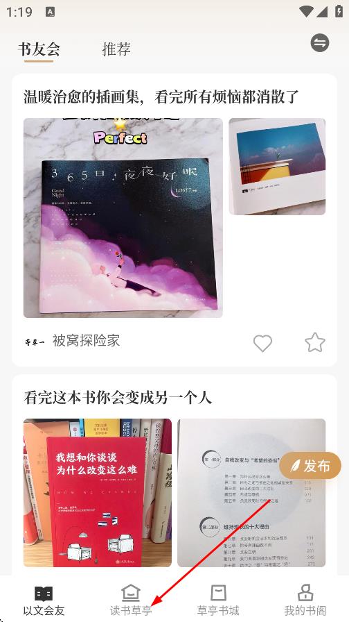 2、在一草亭讀書主頁面,點擊讀書草亭,進入讀書草亭頁面。