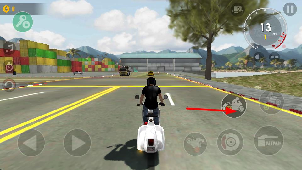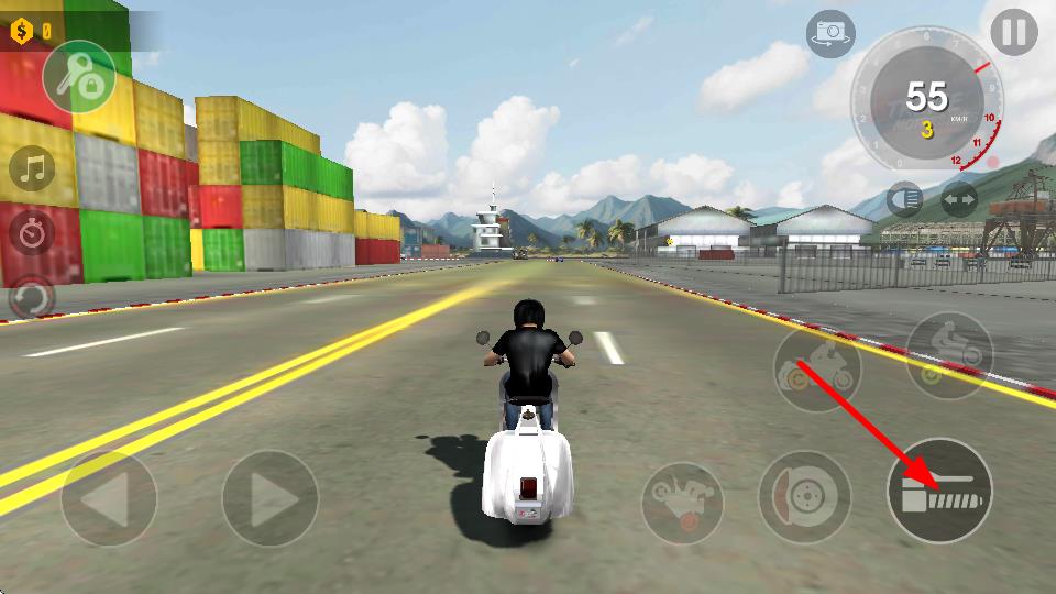 4、再次點(diǎn)擊右側(cè)油門按鍵,可繼續(xù)提升摩托車速度,在直道上保持高速行駛,以縮短行駛時(shí)間,獲取成績(jī)。