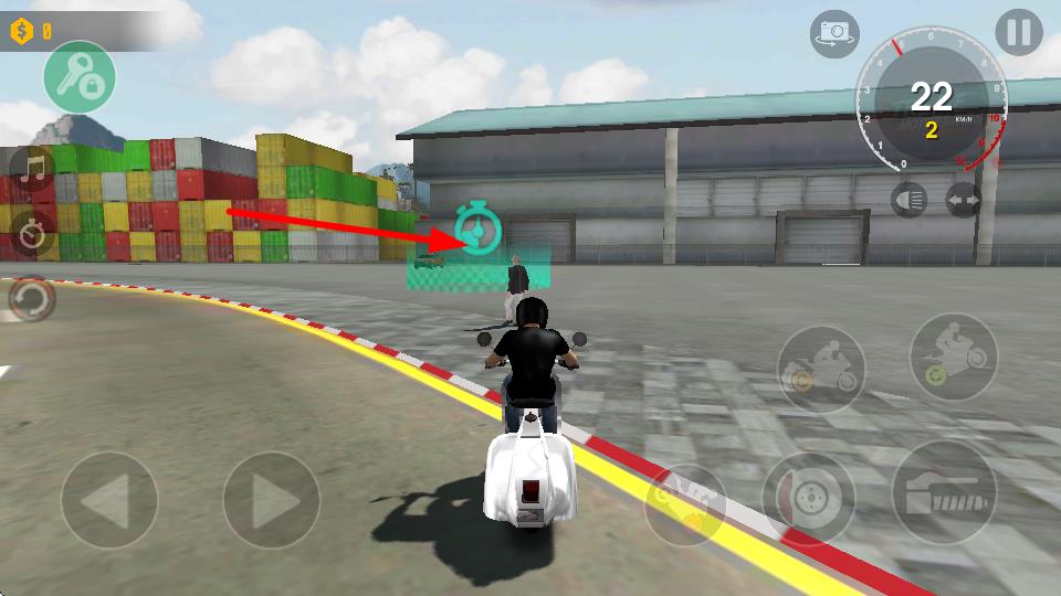 3、駕駛摩托車靠近箭頭指向的綠色計(jì)時(shí)圖標(biāo)區(qū)域,可觸發(fā)計(jì)時(shí)任務(wù),完成任務(wù)可獲取相應(yīng)獎(jiǎng)勵(lì),推進(jìn)進(jìn)程。
