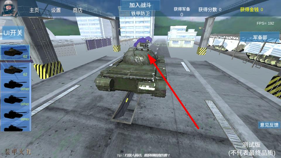 1、選擇箭頭指向坦克,戰(zhàn)斗準(zhǔn)備狀態(tài),該坦克具備特定的火力和防護(hù)能力,不同戰(zhàn)場(chǎng)環(huán)境作戰(zhàn)。