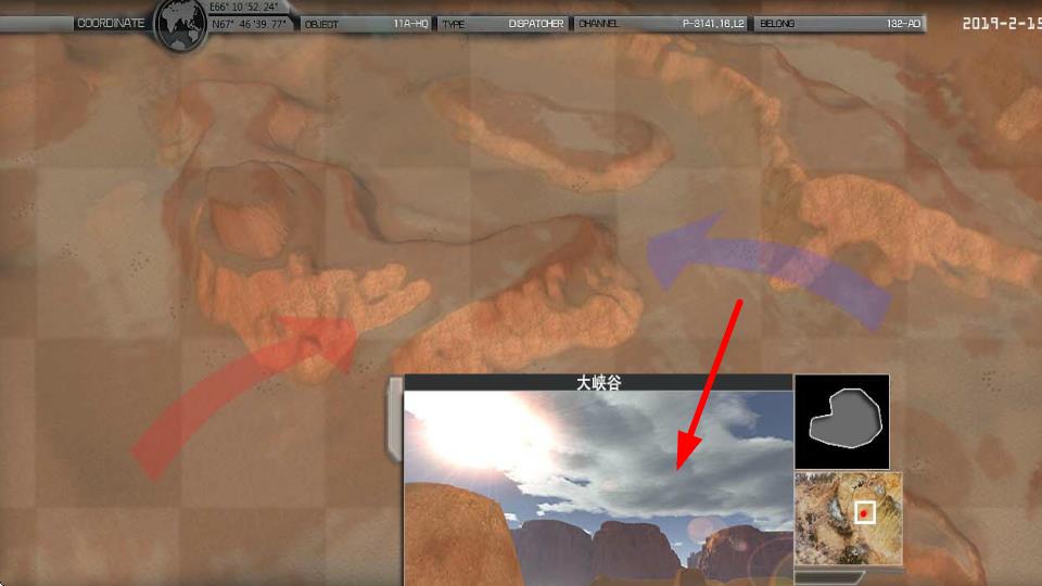 2、關(guān)注箭頭指向的大峽谷戰(zhàn)場(chǎng),具有復(fù)雜的地勢(shì),可利用峽谷進(jìn)行掩護(hù)或伏擊,考慮地形優(yōu)勢(shì)。