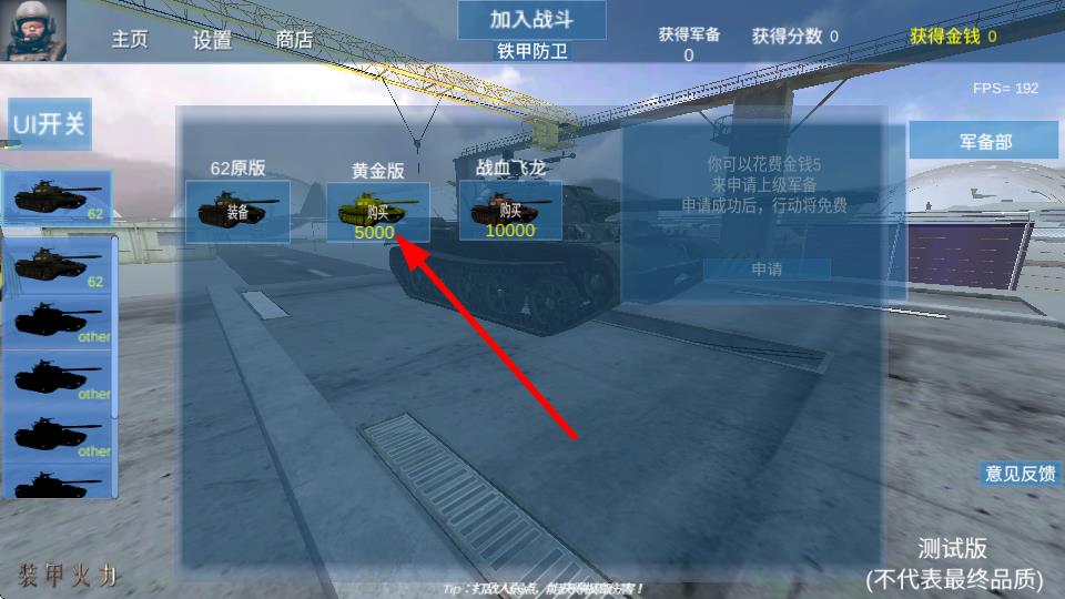 3、點(diǎn)擊購(gòu)買黃金版坦克,可以獲取屬性更優(yōu)的坦克,提升了戰(zhàn)斗的能力,在對(duì)戰(zhàn)中更具優(yōu)勢(shì)。