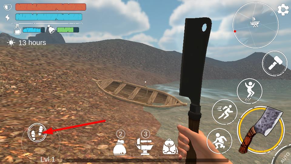 1、點(diǎn)擊左側(cè)腳印按鍵,控制角色移動(dòng),荒野場(chǎng)景中探索資源、尋找區(qū)域,這是角色移動(dòng)操作。