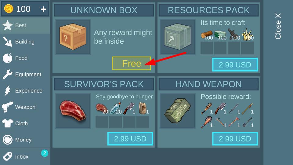 2、點(diǎn)擊Free按鈕,可免費(fèi)領(lǐng)取未知寶箱,有機(jī)會(huì)獲得資源、道具等獎(jiǎng)勵(lì),助力生存和發(fā)展。