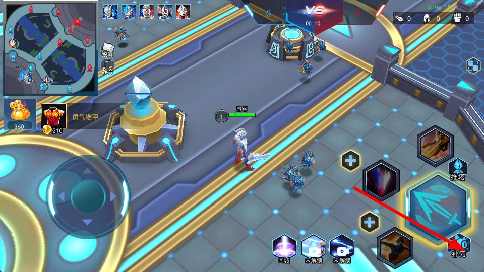 2、點(diǎn)擊補(bǔ)刀按鍵,可對(duì)敵方小兵進(jìn)行最后一擊,獲取額外金幣和經(jīng)驗(yàn),提升等級(jí)和經(jīng)濟(jì)優(yōu)勢(shì)。