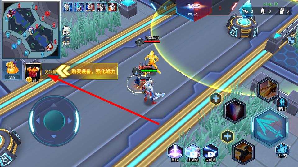 4、點(diǎn)擊購(gòu)買裝備提示區(qū)域,可進(jìn)入裝備商店購(gòu)買裝備,強(qiáng)化角色戰(zhàn)力,提升生存輸出能力。
