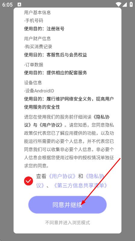 1、在隱私協(xié)議彈窗中,點(diǎn)擊同意并繼續(xù),進(jìn)入小悟故事主頁(yè)面。