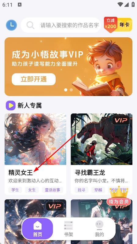 2、在小悟故事主頁(yè)面,點(diǎn)擊精靈女王,進(jìn)入該作品詳情頁(yè)面。