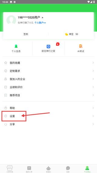 2、在個(gè)人中心,點(diǎn)擊設(shè)置選項(xiàng),進(jìn)入設(shè)置界面。