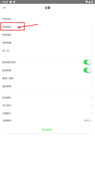 3、在設(shè)置頁(yè)面,點(diǎn)擊修改密碼選項(xiàng),進(jìn)入密碼修改頁(yè)。