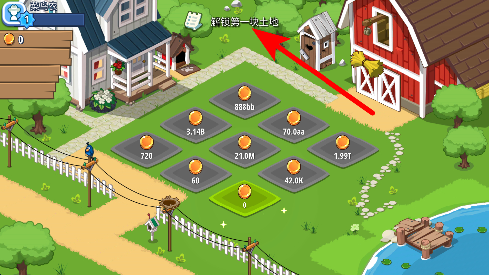 1、進(jìn)入后,首先要解鎖土地,按照界面提示操作,解鎖第一塊土地,為后續(xù)種植作物提供空間,開啟農(nóng)場(chǎng)經(jīng)營的第一步。