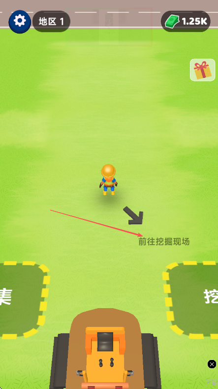 1、進入游戲,查看左上角當(dāng)前所在地區(qū)1和擁有的金錢1.25K,點擊箭頭所指處前往挖掘現(xiàn)場。