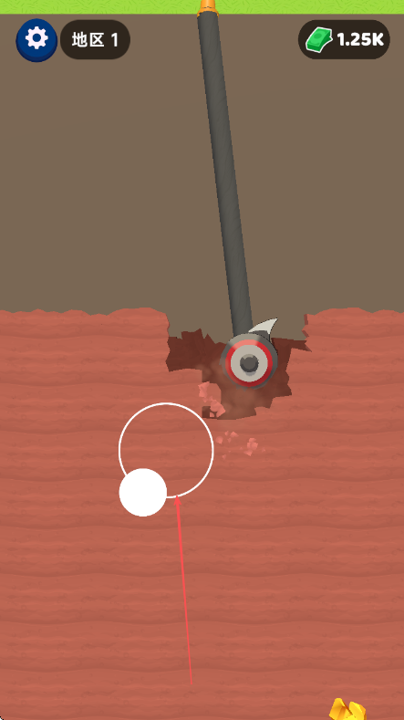 2、在挖掘現(xiàn)場,通過操作屏幕上的控制按鈕操控挖掘工具挖掘泥土和礦石。
