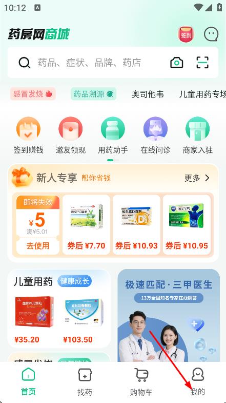 2、在藥房網(wǎng)商城主頁面,點(diǎn)擊底部我的,進(jìn)入登錄頁面。